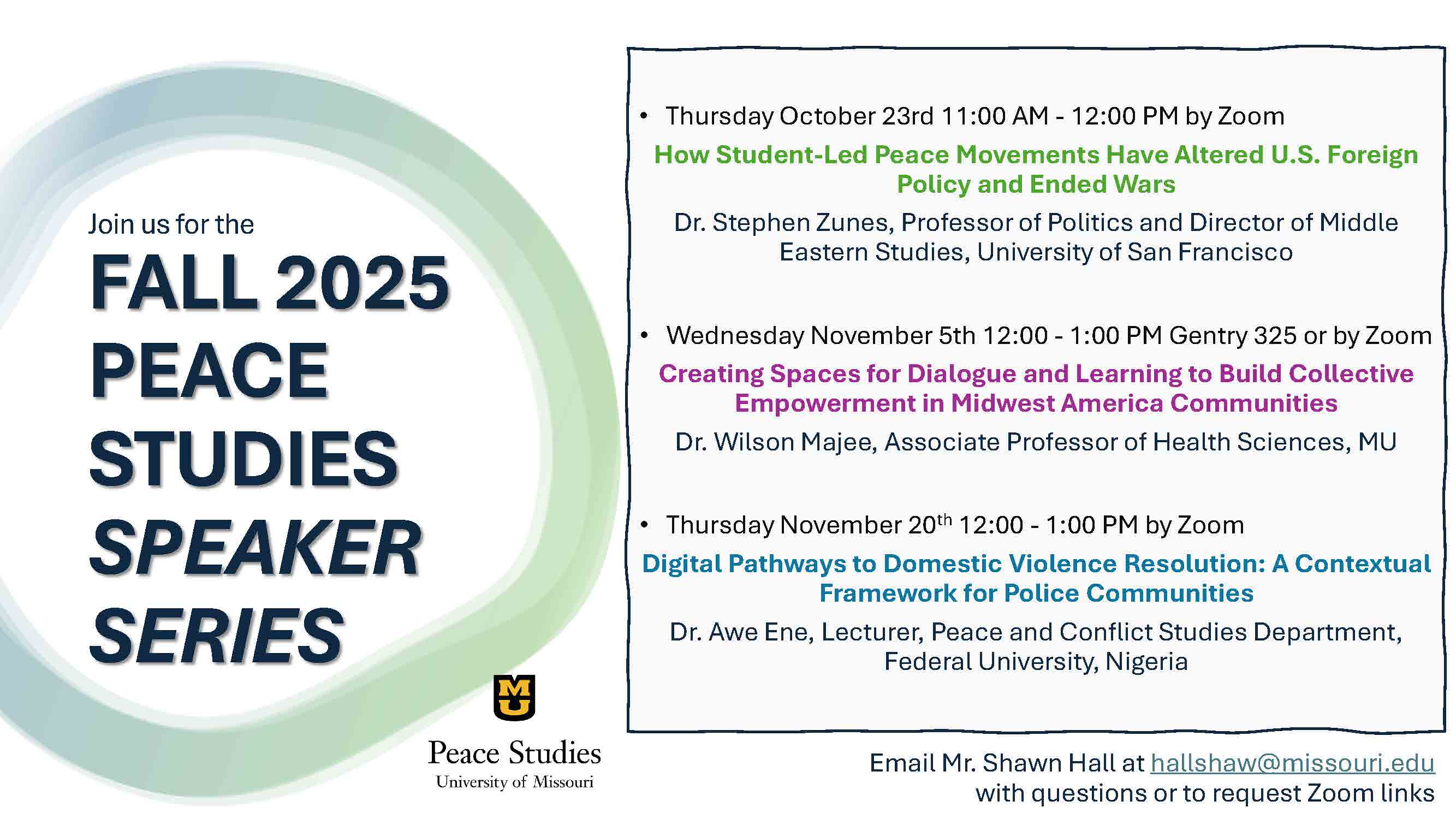 FALL 2025 PEACE STUDIES SPEAKERS' SERIES